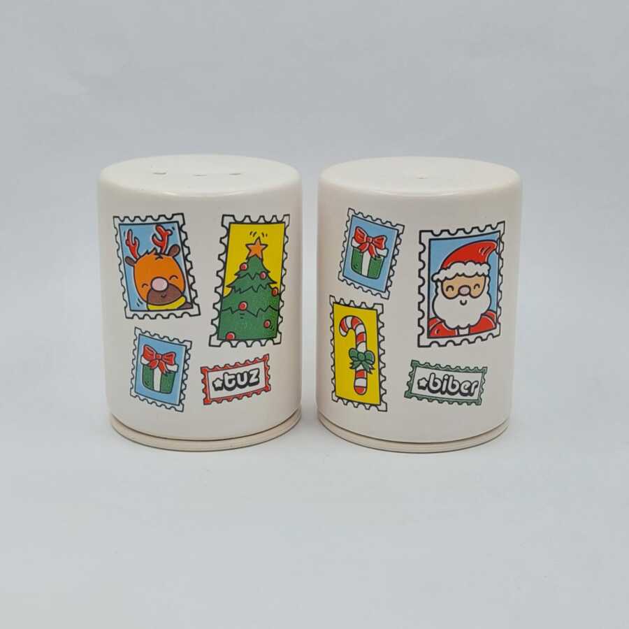 MİNİK GEYİK MUTLU YILLAR-SİLİNDİR SERAMİK TUZLUK & BİBERLİK - SİLİNDİR SERAMİK TUZLUK & BİBERLİK