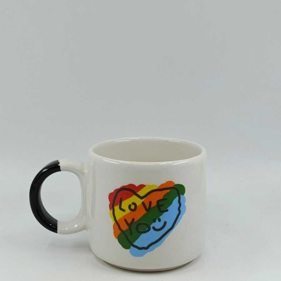 RENKLİ KALP LOVE YOU-D KUPA - SİYAH SAP