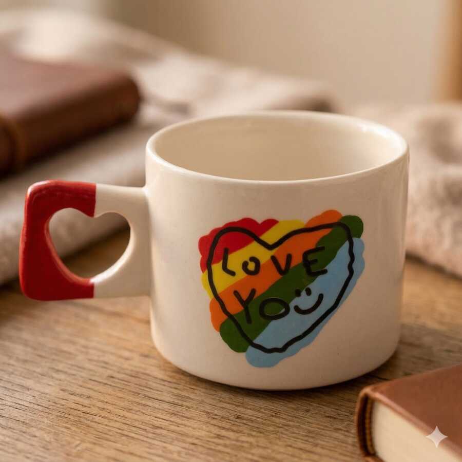 RENKLİ KALP LOVE YOU-KALP KUPA - KIRMIZI SAP