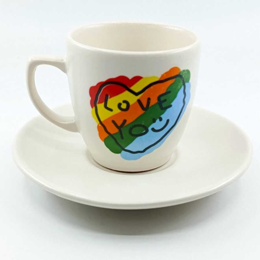 RENKLİ KALP LOVE YOU-KLASİK TÜRK KAHVESİ FİNCANI - TRANSPARAN GÖVDE