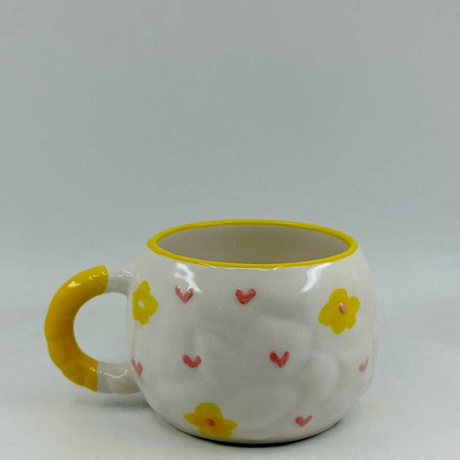 SARI ÇİÇEKLER VE PEMBE KALPLER -3D-TONTİK KUPA - 3D