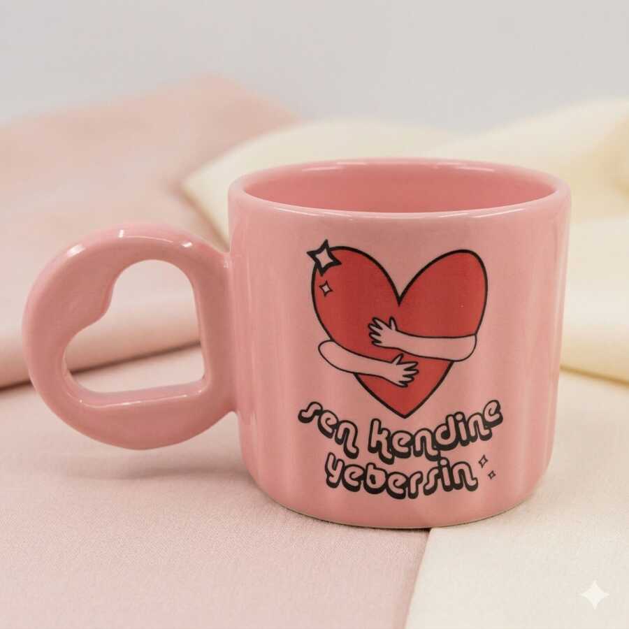 RENKLİ KALP LOVE YOU-EROS KUPA - PEMBE SAP PEMBE GÖVDE