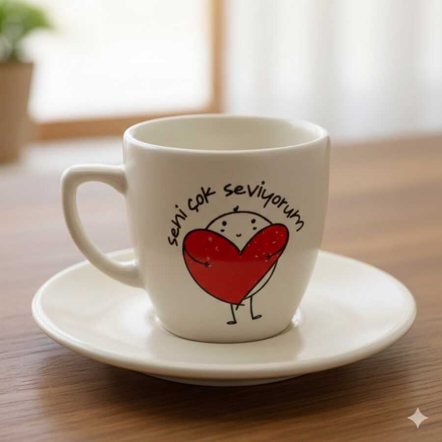 SENI ÇOK SEVIYORUM-KLASİK TÜRK KAHVESİ FİNCANI - TRANSPARAN GÖVDE