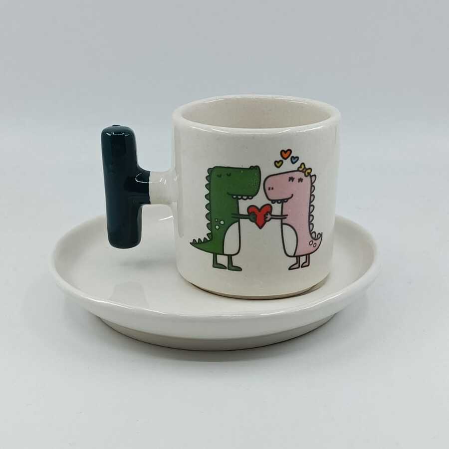 SG.SEVGİLİ DİNOZORLAR-T TÜRK KAHVESİ FİNCANI - YEŞİL SAP