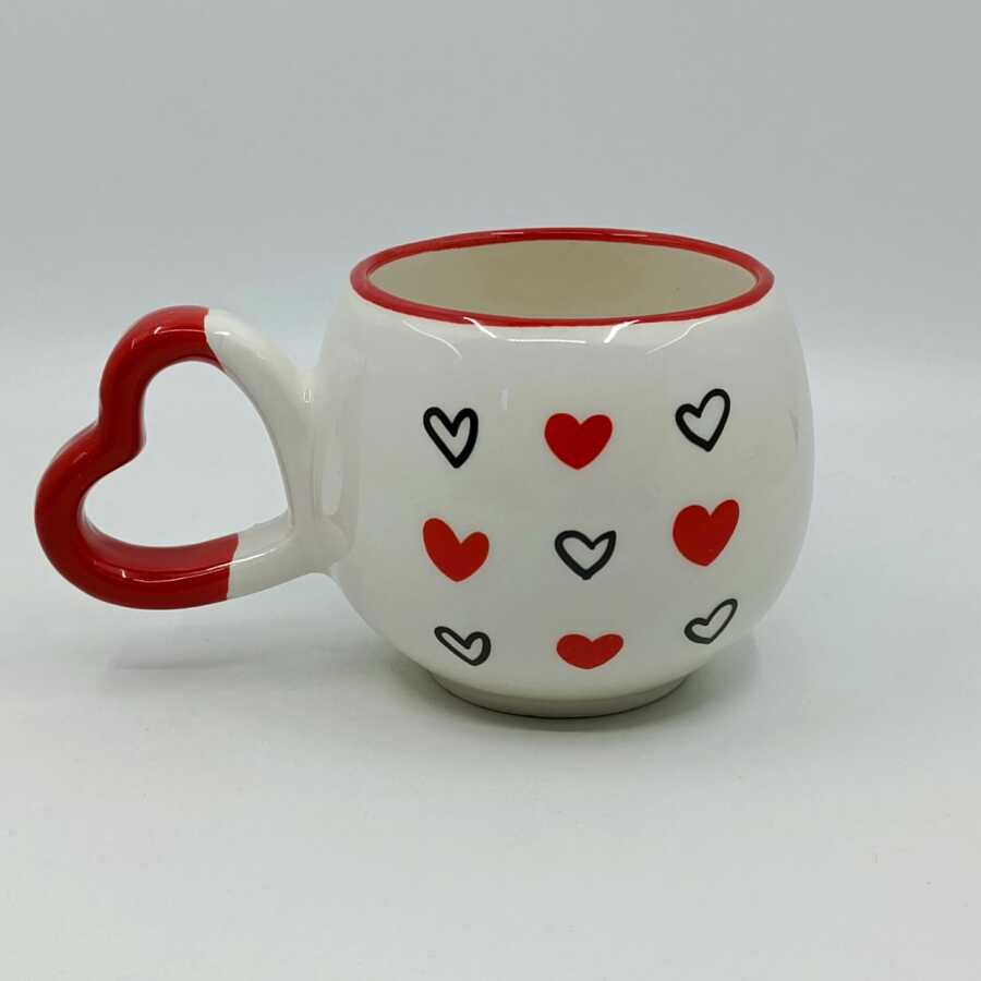 SİYAH KALP KIRMIZI KALP -AMOUR KUPA - KIRMIZI SAP KIRMIZI TURNET