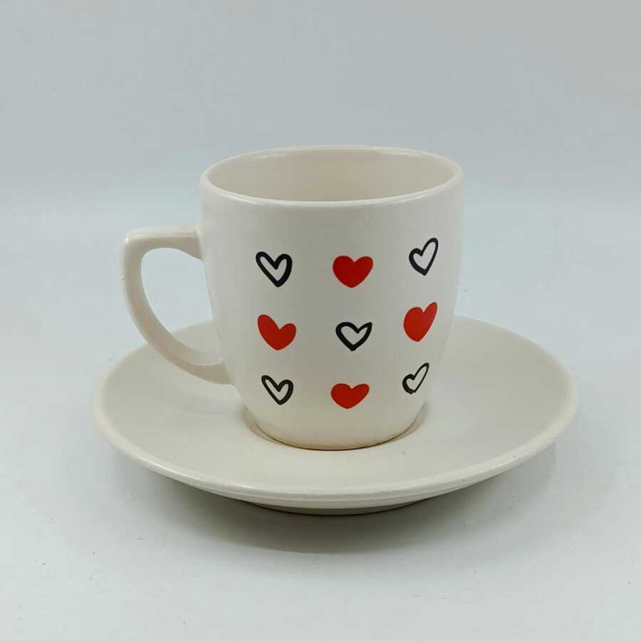 SİYAH KALP KIRMIZI KALP -KLASİK TÜRK KAHVESİ FİNCANI - TRANSPARAN GÖVDE