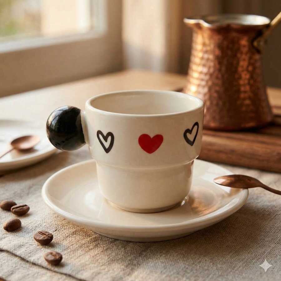 SİYAH KALP KIRMIZI KALP -PUNTO FİNCAN - SİYAH SAP
