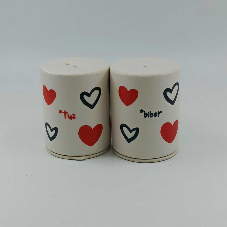 SİYAH KALP KIRMIZI KALP -SİLİNDİR SERAMİK TUZLUK & BİBERLİK - SİLİNDİR SERAMİK TUZLUK & BİBERLİK