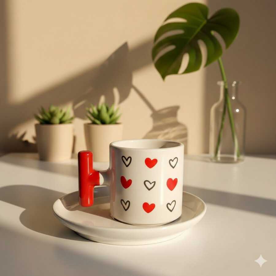 SİYAH KALP KIRMIZI KALP -T TÜRK KAHVESİ FİNCANI - KIRMIZI SAP