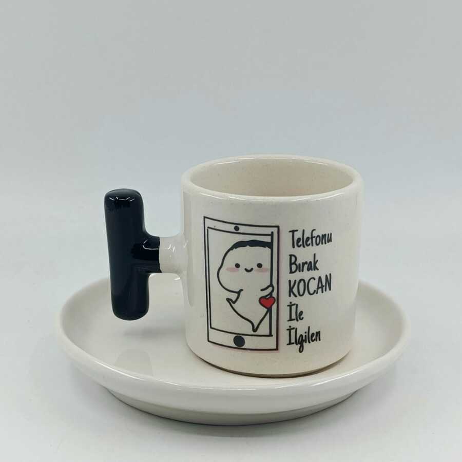 TELEFONU BIRAK KOCANLA İLGİLEN-T TÜRK KAHVESİ FİNCANI - SİYAH SAP