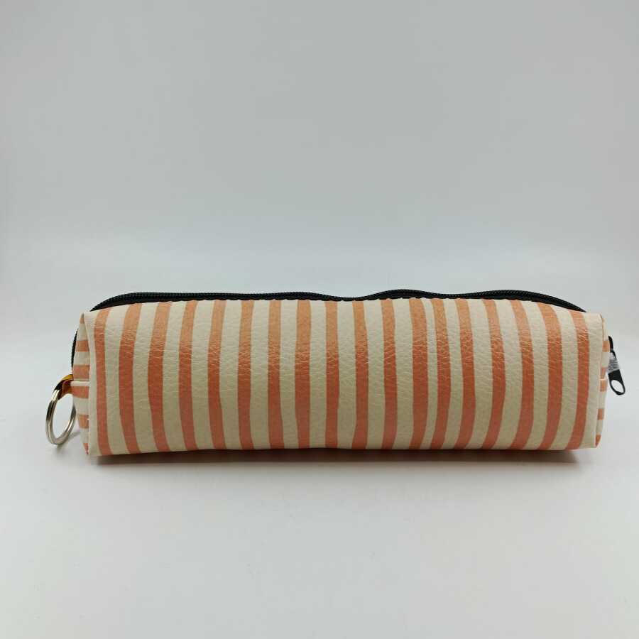 TURUNCU KREM ÇİZGİLİ-DERİ KALEM KUTU - TEKLİ