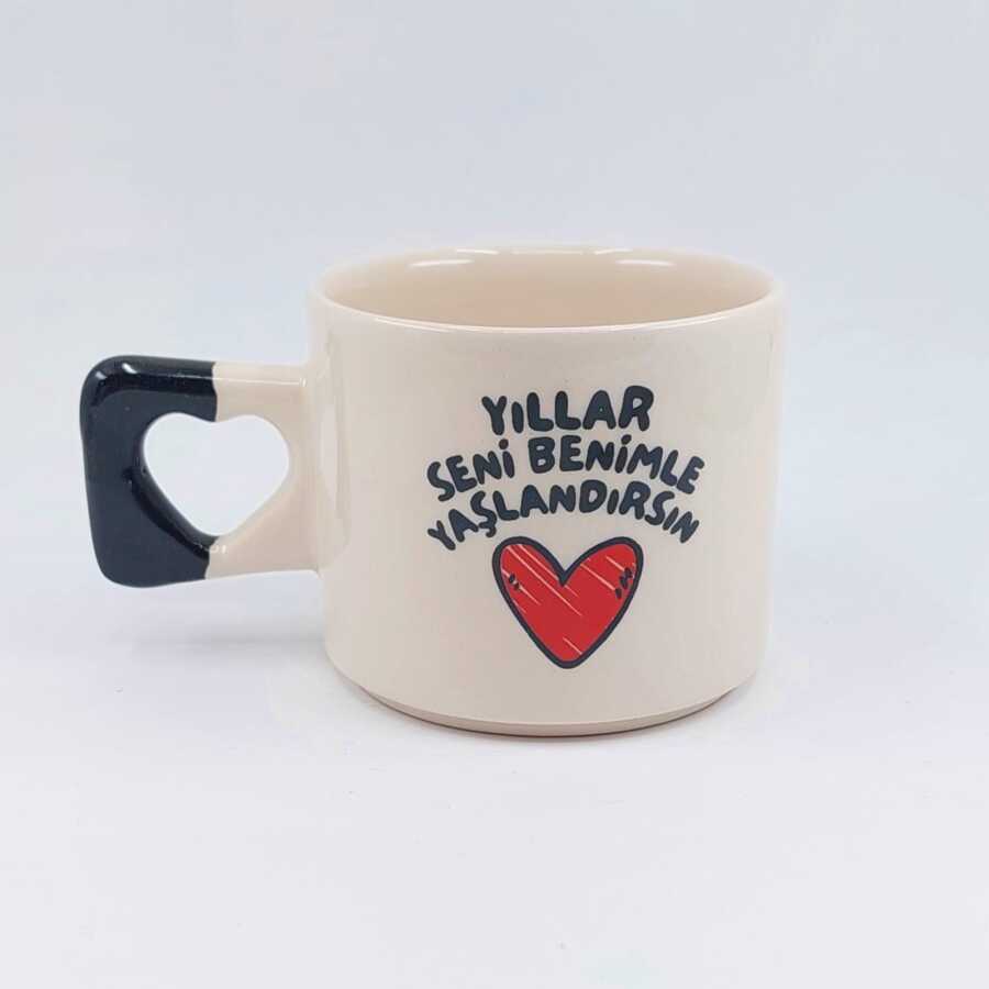 YILLAR SENİ BENİMLE YAŞLAN-KALP KUPA - SİYAH SAP