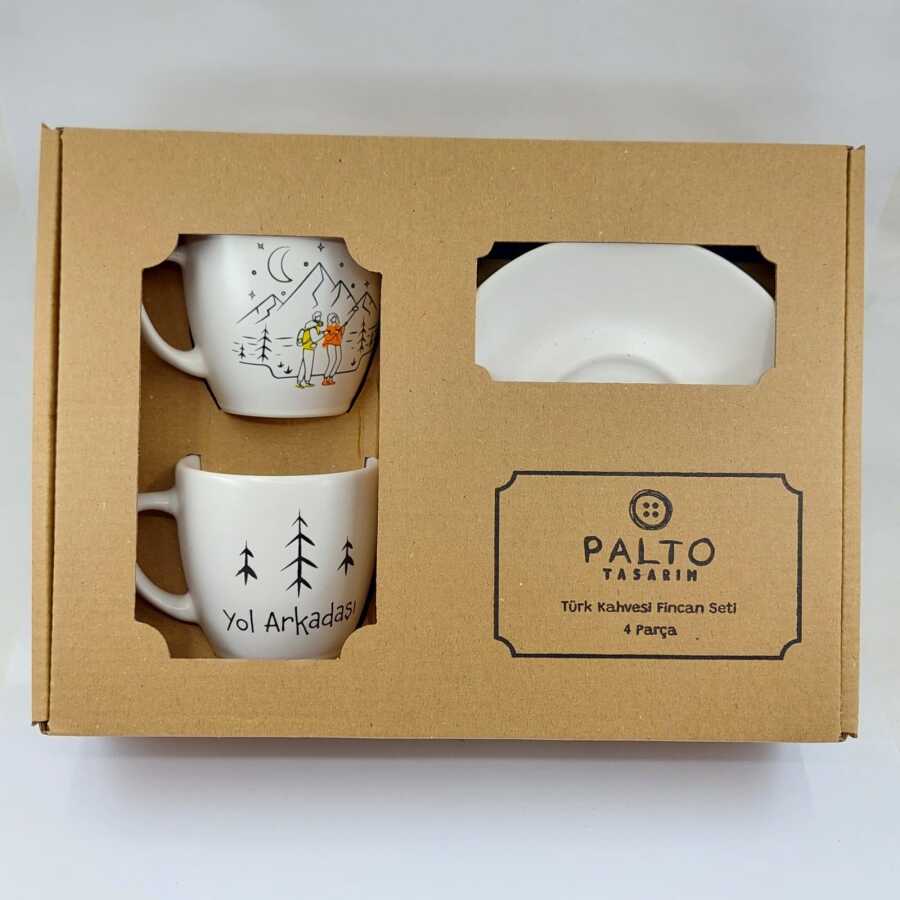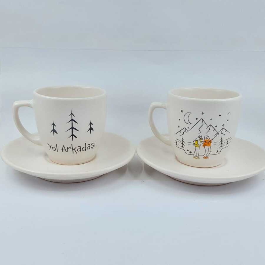 YOL ARKADAŞI & YOL ARKADAŞI ÇİZGİSEL-İKİLİ TÜRK KAHVESİ FİNCANI - TRANSPARAN