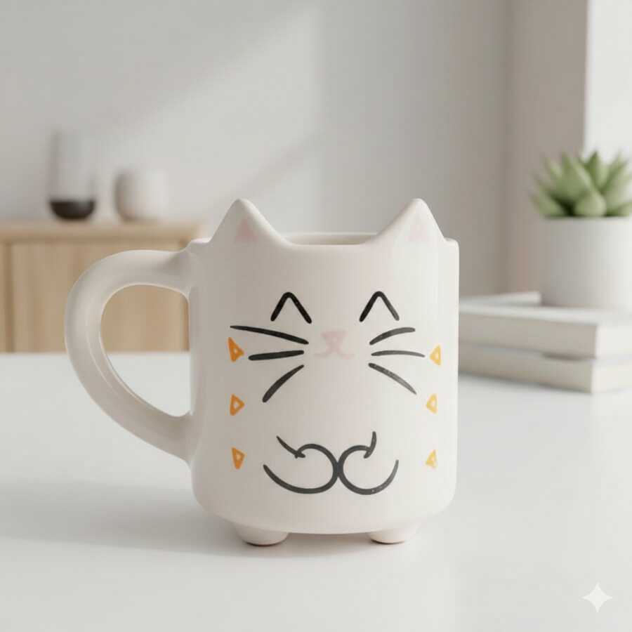 ANİME KEDİ-KEDİ KUPA - SİYAH GÖVDE SİYAH SAP